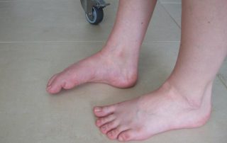Chora doznała urazu w okolicy kolana ? proste uderzenie w okolice stawu kolanowego. Doszło do uszkodzenia nerwu strzałkowego i w efekcie braku możliwości czynnego zgięcia grzbietowego stopy oraz pogłębiające się ustawienie końsko-szpotawe stopy. Chora męczyła się przez wiele lat.