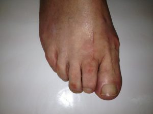 Wykonuję w takich sytuacjach tzw cheliotomię i toaletę stawu lub jak jest taka potrzeba osteotomię skracającą kości śródstopia.