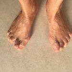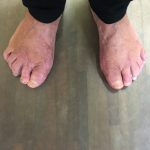 Chora w wieku starszym z dużymi zmianami w obrębie przodostopia. Zgłosiła się do mnie z powodów bólowych.
