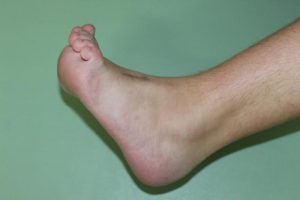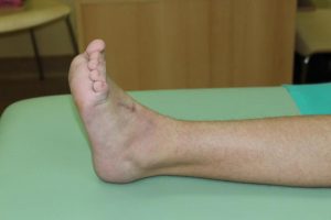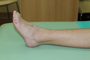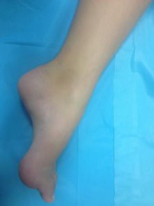 Po badaniu zakwalifikowałem chorą do operacji rekonstrukcyjnej. Uwolniłem staw skokowy w części tylnej, przedłużyłem ścięgno Achillesa oraz przeniosłem ścięgno mięśnia piszczelowego przedniego z przyśrodka stopy na stronę grzbietową, co spowodowało możliwość czynnego zginania grzbietowego stopy.