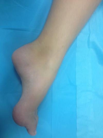 Po koniecznej operacji rdzenia kręgowego usunięto guz ? neuroblastemę, wystąpiło powikłanie polegające na porażeniu nerwu strzałkowego. Nie potrafiła zginać stopy grzbietowo. Powstało utrwalone ustawienie końskie stopy. Stale utykała, żyła w dużym dyskomforcie.