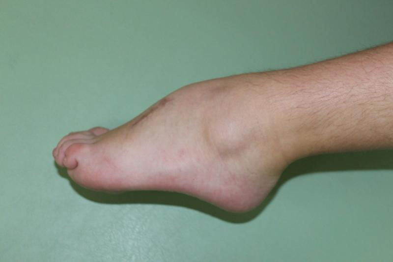 Po badaniu zakwalifikowałem chorą do operacji rekonstrukcyjnej. Uwolniłem staw skokowy w części tylnej, przedłużyłem ścięgno Achillesa oraz przeniosłem ścięgno mięśnia piszczelowego przedniego z przyśrodka stopy na stronę grzbietową, co spowodowało możliwość czynnego zginania grzbietowego stopy.