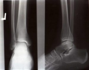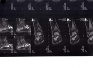 Podjąłem się operacji – próby ratowania stawu. Przeprowadziłem zabieg operacyjny – usunąłem i następnie wypełniłem cystę kości piszczelowej w bezpośredniej bliskości stawu skokowego wiorami kostnymi.