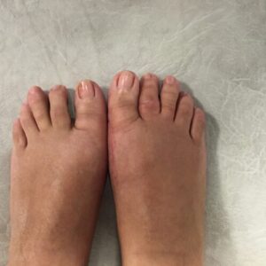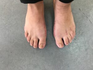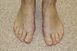 W jednym wypadku muszę bardziej skrócić I kość śródstopia, w innym mocniej ją przemieścić do II kości. Czasami trafiam na słabszą kość, wtedy wzmacniam ją przeszczepami autogennymi, czasami stosuje podwójną stabilizacje.
