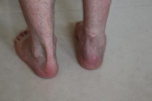 Został wykonany zabieg operacyjny zespolenia zerwanego Achillesa z guzem kości piętowej.